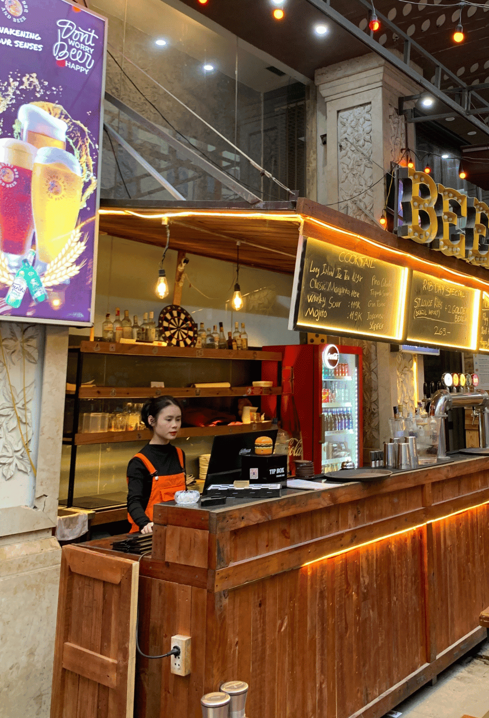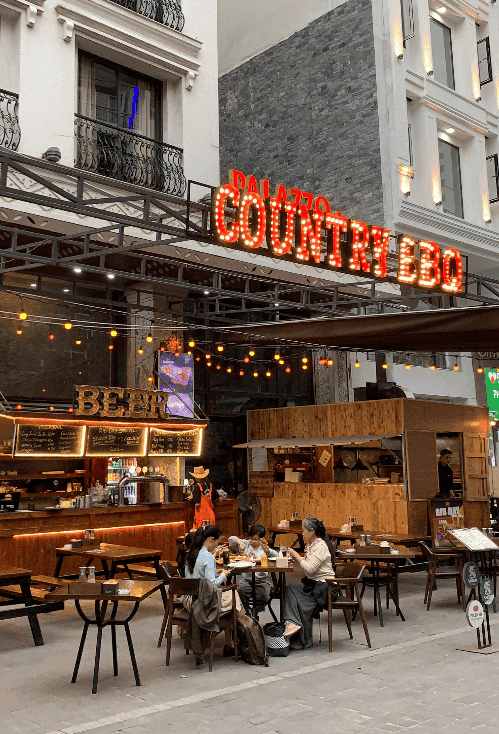Beer & Chill: A vibrant open-air atmosphere, the perfect setting to kick back and enjoy ice-cold draft beers.